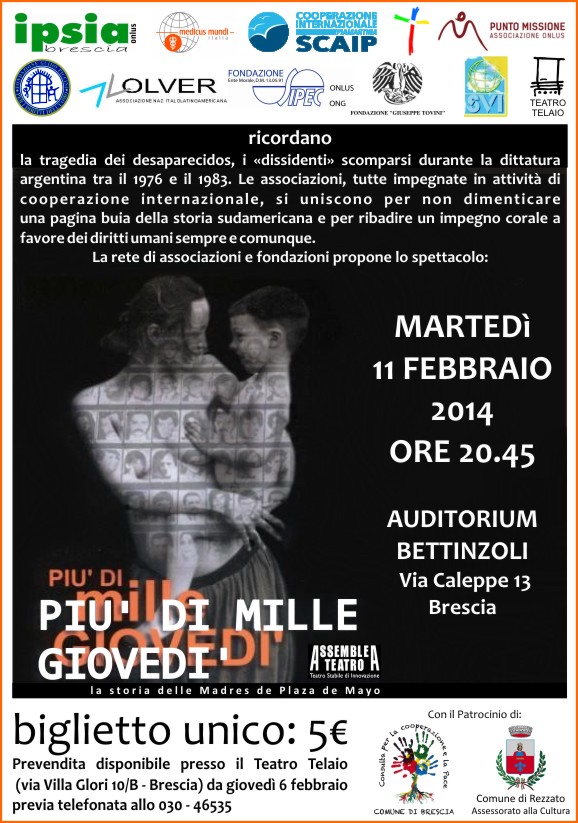 La prevendita è disponibile presso il Teatro Telaio (via Villa Glori 10/B – Brescia)